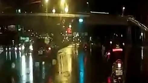 监控实拍:雨夜 不可思议的车祸...