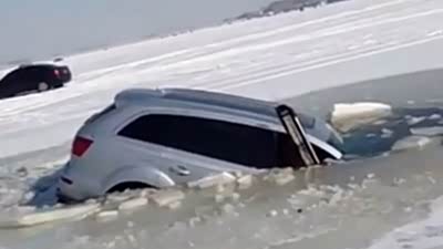 相当无奈 奥迪Q7冰面漂移坠入冰窟实录
