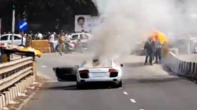 宝贝变废铁 奥迪R8街头自燃令人心惊