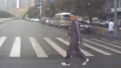 无奈惨剧 老人闯灯过马路遭货车碾压