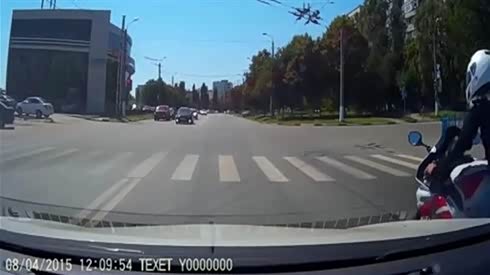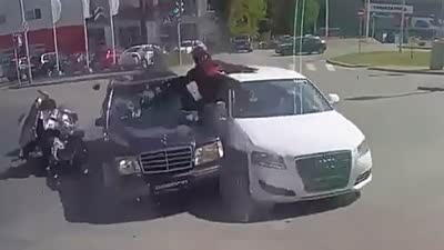 赔大发了 摩托车闯红灯连撞奥迪大奔