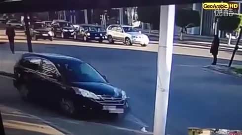 吓尿了 路口两车激烈对吻险些吞噬行人
