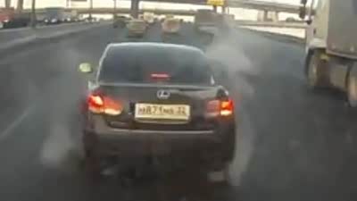 绝对吓一跳 车友偶遇巴士公路突然爆胎