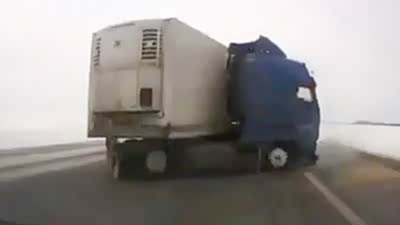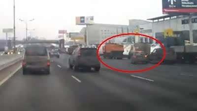 幸好离得远 车友实拍拖挂卡车失控撞车