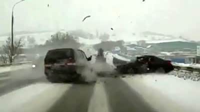 恐怖瞬间 实拍SUV雪地失控酿连环车祸