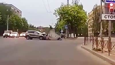 又见闯红灯 超速摩托车路口遭汽车撞飞