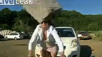 绝对暴脾气!短裙美女抓狂怒砸小轿车