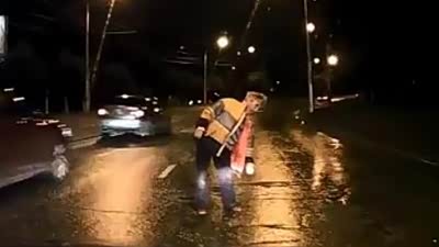 感人正能量 车友行车途中为老太挡水