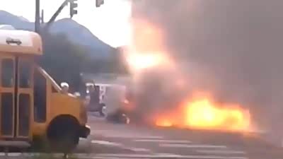 一声巨响 实拍轿车事故后当场起火爆炸
