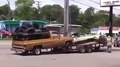 真是一根筋 皮卡上拖车架直接推翻前车