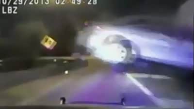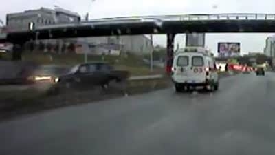 这下闯祸了 实拍小汽车将警车惨烈别翻
