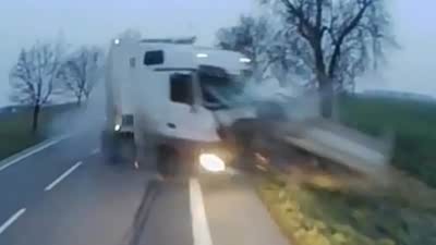 全部成员死亡 大货车爆胎引发恐怖对撞