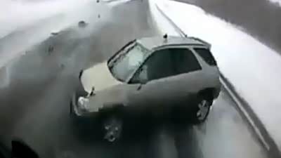 雪天开车切记慢行 SUV失控疯狂打转