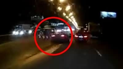 恐怖慎入!轿车街头碰撞惊险碾轧两行人