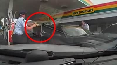 拔枪都吓不住 男子加油站疯狂躲避警察