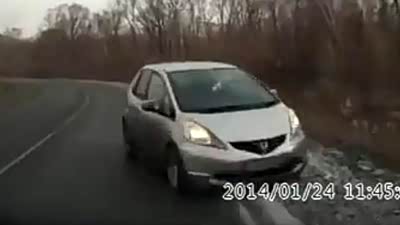 实在是惊险 车友超机智躲过迎面撞击