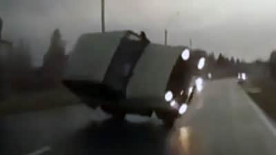 无辜躺枪 SUV雨天侧滑翻车猛撞车友