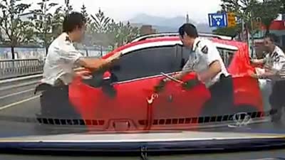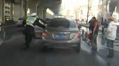 这是要疯啊 违章轿车强行挣脱交警阻拦