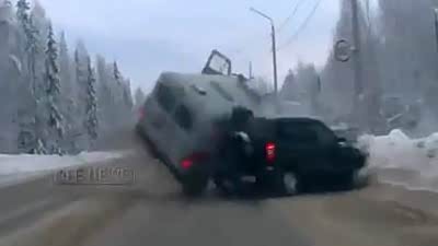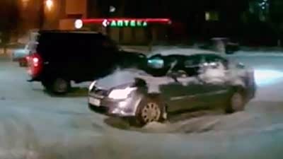 地滑慢点开 实拍SUV雪地追尾右转轿车