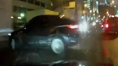 吓一大跳 实拍车友遭失控轿车突然袭击