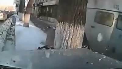 粉身碎骨 车友雪天超车失控惨被撞碎