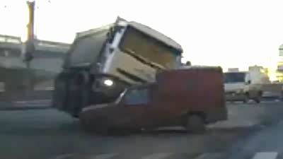 刹车失灵 车友惨遭失控货车猛烈撞击