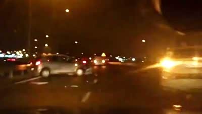 宛如炮弹 小轿车十字路口掀翻大巴车