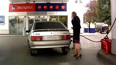 史上最马虎 女司机加油站内接连犯错