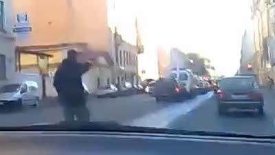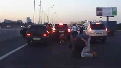 公路角斗场 实拍俄罗斯车友被打跪地