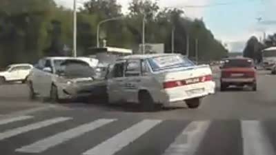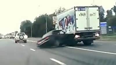 刹车抱死 拉达轿车公路失控猛撞卡车