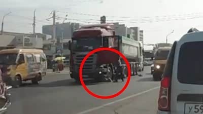 远离大车 行人过马路遭卡车碾压拖行