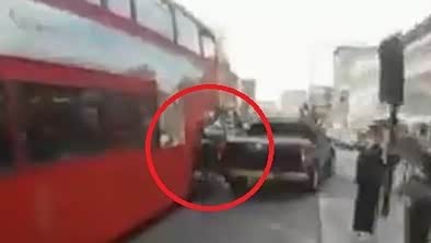 成夹肉饼了 骑行男疯窜惨遭巴士挤压