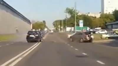脾气够差的 俄罗斯车友路口顶撞行人