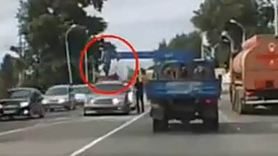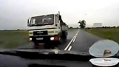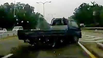 开车莫生气 夫妻行车中吵架与卡车相撞