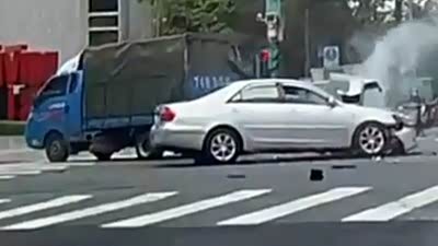 起火爆炸 男子躲避警察疯狂驾车逃窜
