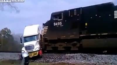 只在一念间 汽车与火车的猛烈碰撞集锦