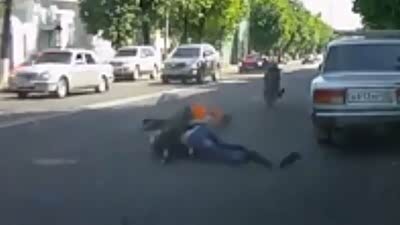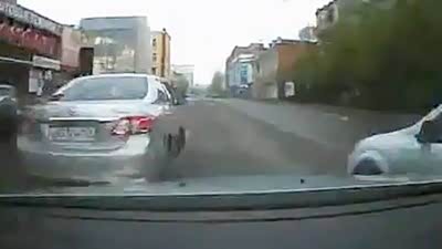 躺着也中枪 踏板摩托追尾停靠汽车飞人