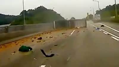驾驶员甩出 记录仪实拍超恐怖对撞车祸