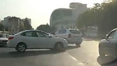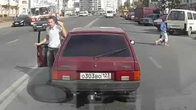 实在太冲动 乘客拖曳公交司机致9车连撞