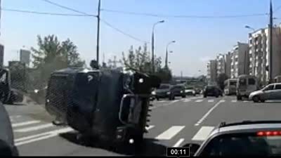 纯属自食恶果 越野车路口闯红灯被撞翻