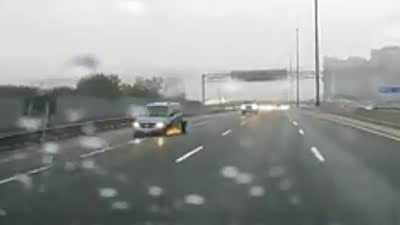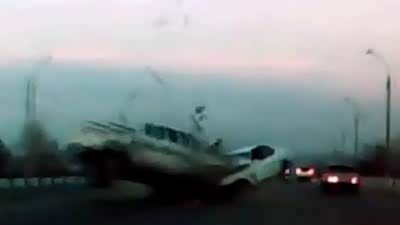 太过鲁莽 实拍小轿车追尾失控翻出公路