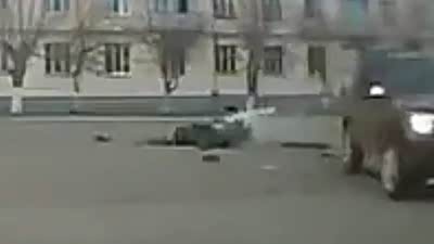 丧心病狂 实拍外国疯狂男子开挂撞汽车
