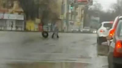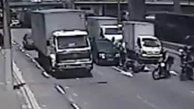 恐怖意外 实拍摩托车惨遭重型货车碾压
