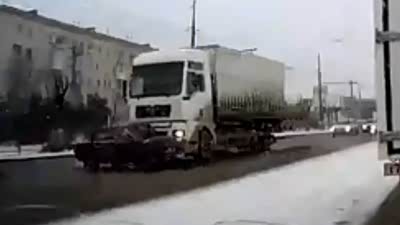 打击报复?实拍卡车街头横顶轿车前进