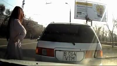脾气太暴了 俄罗斯车友当街对抗醉汉