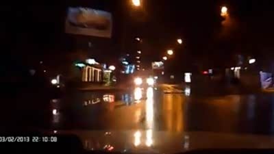黑夜惊魂 实拍车友路口猛撞闯灯货车