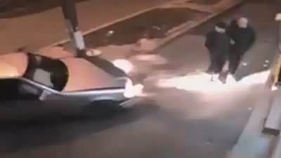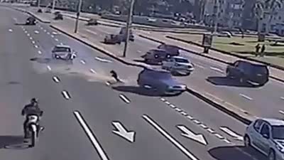 恐怖瞬间 青年男女骑车惨遭轿车撞飞