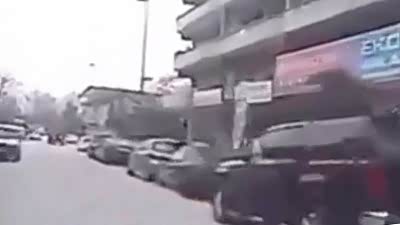 超恐怖 实拍车友突遭迎面失控车辆猛撞