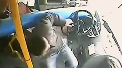 公交车被灯杆穿破 司机神奇躲过一劫