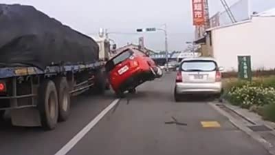 猝不及防 无德大货强行并线引发撞车